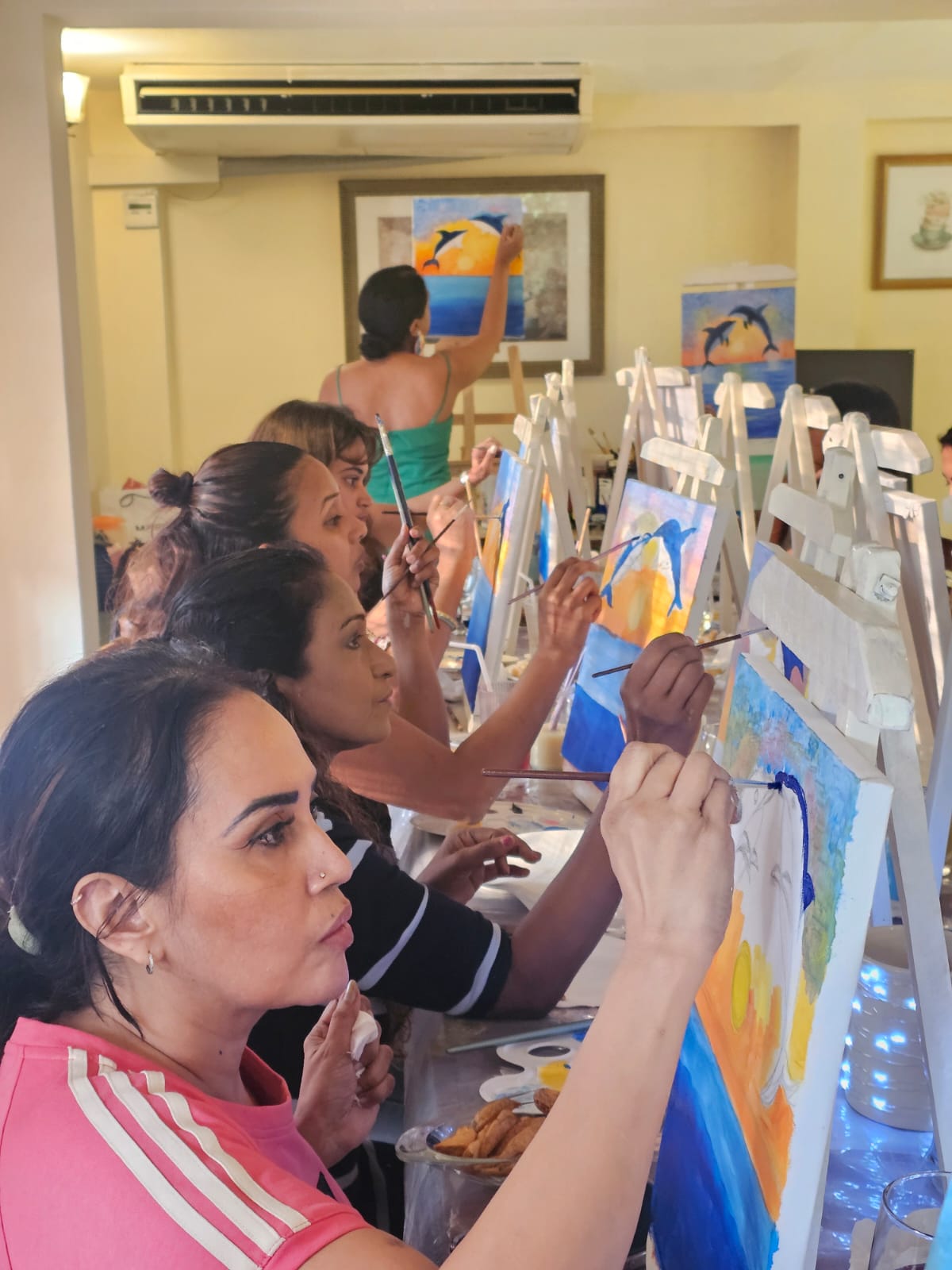 The painting workshop was led by Harini, a passionate and gifted artist whose calming guidance set the perfect tone for the session. The centrepiece concept a breathtaking scene of two dolphins leaping in harmony proved to be as mesmerising as it was therapeutic. Participants found themselves immersed in a tranquil creative journey, each brushstroke a quiet act of self-expression and joy.